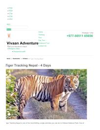 Link: http://www.vivaanadventure.com/trip/tiger-tracking-nepal/ Tiger Tracking Nepal is one of the most thrilling Jungle activities you can do in Chitwan National Park. One of the most endangered species of fauna Royal Bengal Tiger (Panthera Tigris) is on the top of their eco-system and play an active role in maintaining the delicate balance of Nepal’s threatened natural fauna
