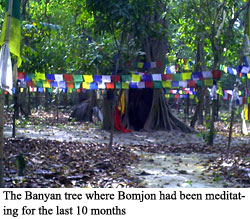 Meditating boy Bomjon disappears (Where the hell he is doing ? may be going to BODAGAYA for peace meditation .. } Kantipur Report KATHMANDU, March 11 - A 16-year old teenager Ram Bahadur Bomjon, who has been meditating in the jungles of Ratanpuri village in Bara district, has disappeared since Friday night. “Bomjom disappeared from the meditating site at around 3 am this morning,†said Harihar Dahal,, the assistant chief district officer told eKantipur over the phone. “Police has been dispatched to search for him and we are still waiting for details,†Dahal said. Meanwhile, state-run Nepal Television Saturday reported that whether Bomjom himself abandoned his mediation or somebody forcefully took him way was not clear. The televison also reported that Bomjom’s clothes were found nearby the meditating site. (dds