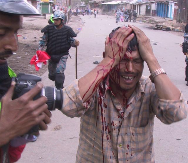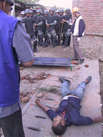 History will not forget this scene. And Parties must not forget to celebrate these brave people as the martyre of people's movement - JANANDOLAN- for Republic Democracy through the reenstate of the disolve parliament to have the national assembly election for the new constitution and keep or kick-out the king from Nepal. Shah and Rana and their puppets in Army and Police have done to people these sort of killing and astrocities since the dawn of Shah regime. Shah and Rana have never let Nepali people to have basic human right with freedom. I live in America and I used ask police officers who have came to USA the question - 'Did you think different from ordinary people being a police officer in Nepal as the part of HMG thus treat people as lower grade or second citizen' Most of them said yes because they were tought to treat people that way to protect the interest of HM.