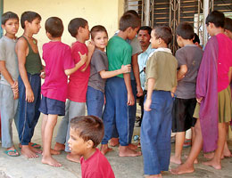 उधारो दसैं दसैंका लागि लुगा छेक्न दर्जीकहाँ पुगेका धनगढीस्थित बालगृहका बालबालिका । खर्च अभावमा उनीहरूका लागि उधारोमा कपडा किनेको र उधारैमा सिलाउन लगाइएको हो । बालगृहमा ५९ बालबालिका छन् । दाताहरूबाट ४० जनालाई मात्र सहयोग प्राप्त भएकाले उनीहरूको स्कुलको शुल्कसमेत दुई वर्षदेखि तिरिएको छैन । (तस्वीर : देवेन्द्र भट्टराई ) Afu matrai moj garne bhanya??