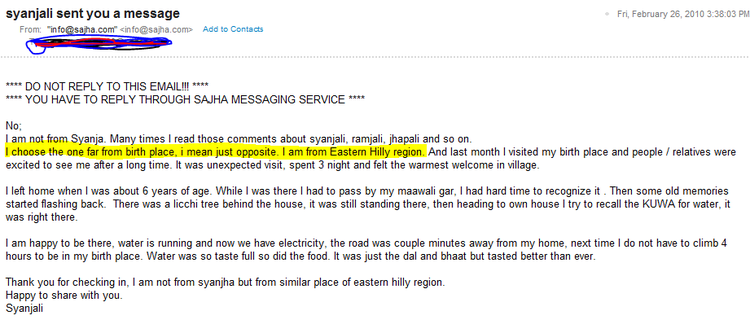 First of all I would to clearify this syangali du de is not from Syanja . This kiddo is defaming my GREAT Syangja. Take a look at his email below