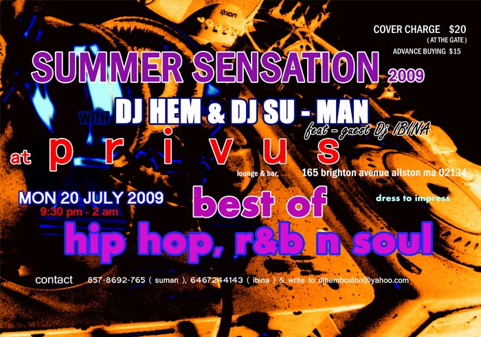 yes!!!! doing it again this summer with dj hem and dj su-man spinning best of hip-hop and r&b welcoming all new comers to boston and our special boston fans. bring in guests too. this summer sensation is all about meeting friends and being friends .............so east coast lets do it again.