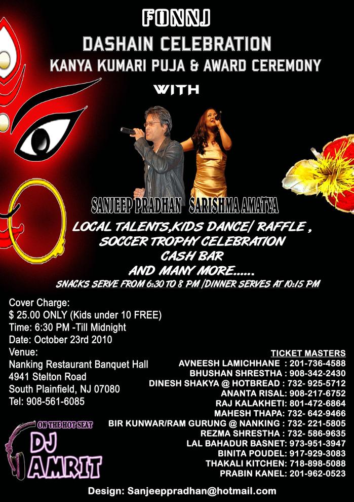 FONNJ Presents Dashain Celebration and Award Ceremony with Guest Artists Sanjeep Pradhan & Sarishma Amatya