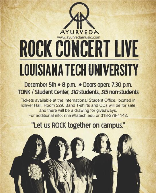 Ayurveda, A nepali rock band is about to rock at, Louisiana Tech University, Ruston, LA. Visit: