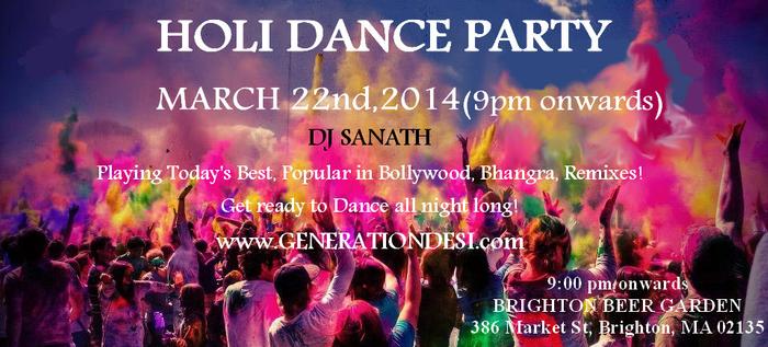 All indoors, on March 22nd, 2013-doors open 9pm. we are going to celebrate with all other folks from, boston, providence, new hampshire and connecticut. Calling all bollywood and bhangra lovers - lets dance, lets have some fun-bindaas! Festival of Holi!
