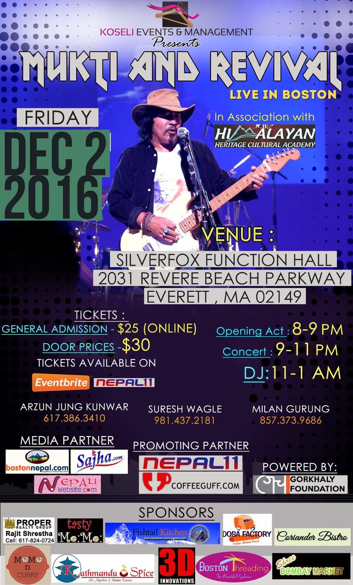 Mukti N Revival is the most electrifying Rock Band of Nepal. Their fusion of ethnic music with Rock n Blues has been a different taste for Nepalese for over a decade. They are in M&R- USA Rock Tour this year. We are more than happy to feature them in the historic and happening city of BOSTON.