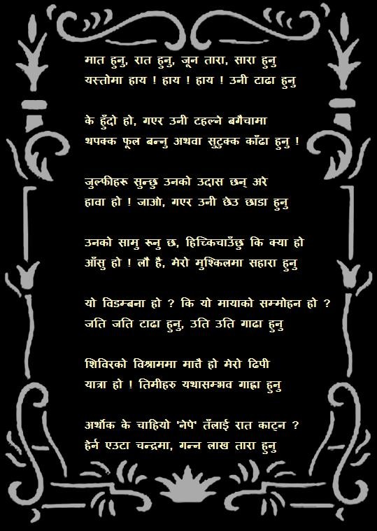 त्यो त हो - मीरा छानेको भए अझ बढी असर आउथ्यो होला ! तपाईको सल्लाहको कदर गर्दछु ! कुनै कारणले शब्द छानेको हैन ! मनमा जे आयो त्यसै लेख्या मात्र हो ! हुन त यसो गरे नि हुने हो -